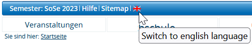 By clicking on the English flag symbol in the blue menu bar, you can change the language to English: